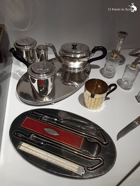 No vamos a explicar la historia de dicho destierro, ya habrá tiempo para ello, pero sí que vamos a mostraros algunos de los objetos que acompañaron al Emperador en su cautiverio isleño, objeto principal de la muestra. Recorriendo sus salas, ubicadas en la planta superior del palacio, se tiene una rara sensación, a veces chocante, al ver objetos de unos 200 años de antigüedad que en algún momento pertenecieron al entorno o eran directamente objetos personales del Gran Corso.