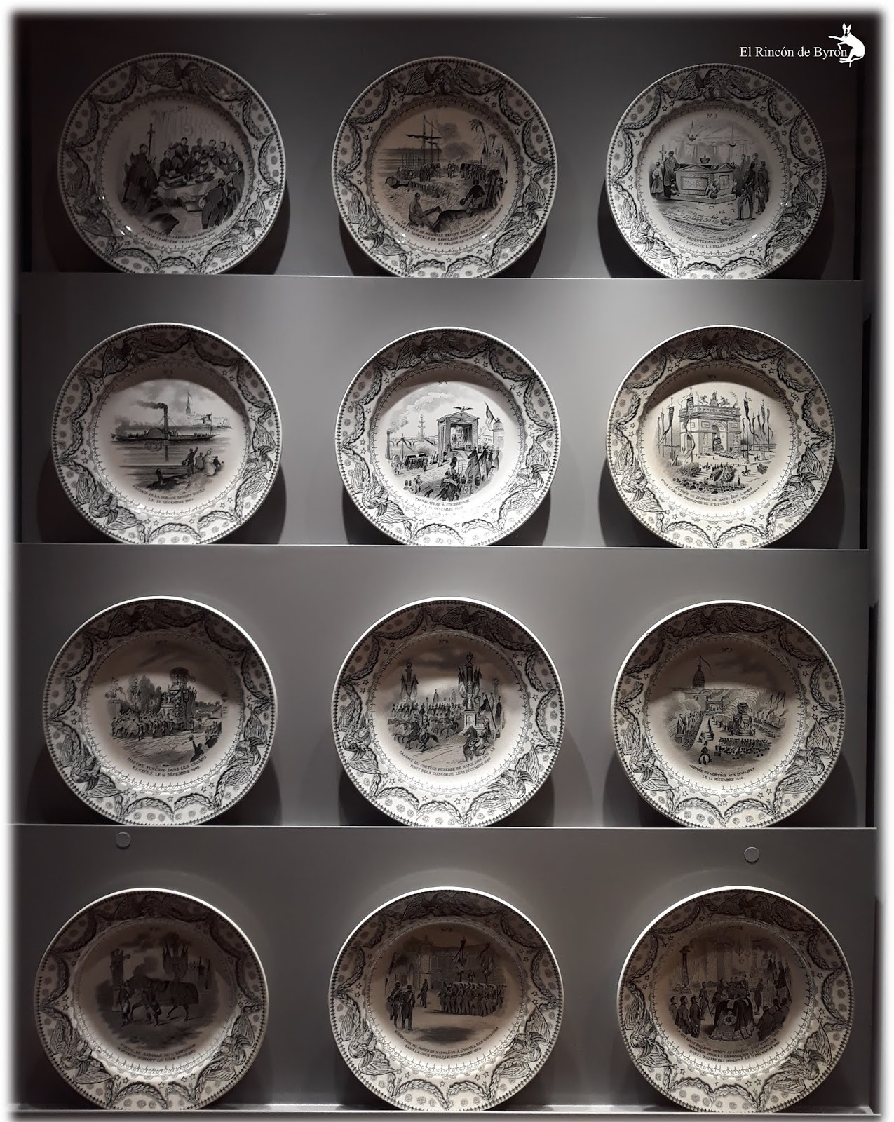 Doce platos describiendo el Retorno de las cenizas (1841-1844). Porcelana opaca Manufactura de Creil y Montereau. Estos platos pertenecen a una de las principales producciones de objetos populares suscitados por la ceremonia del Retorno de las cenizas (15/12/1840). |