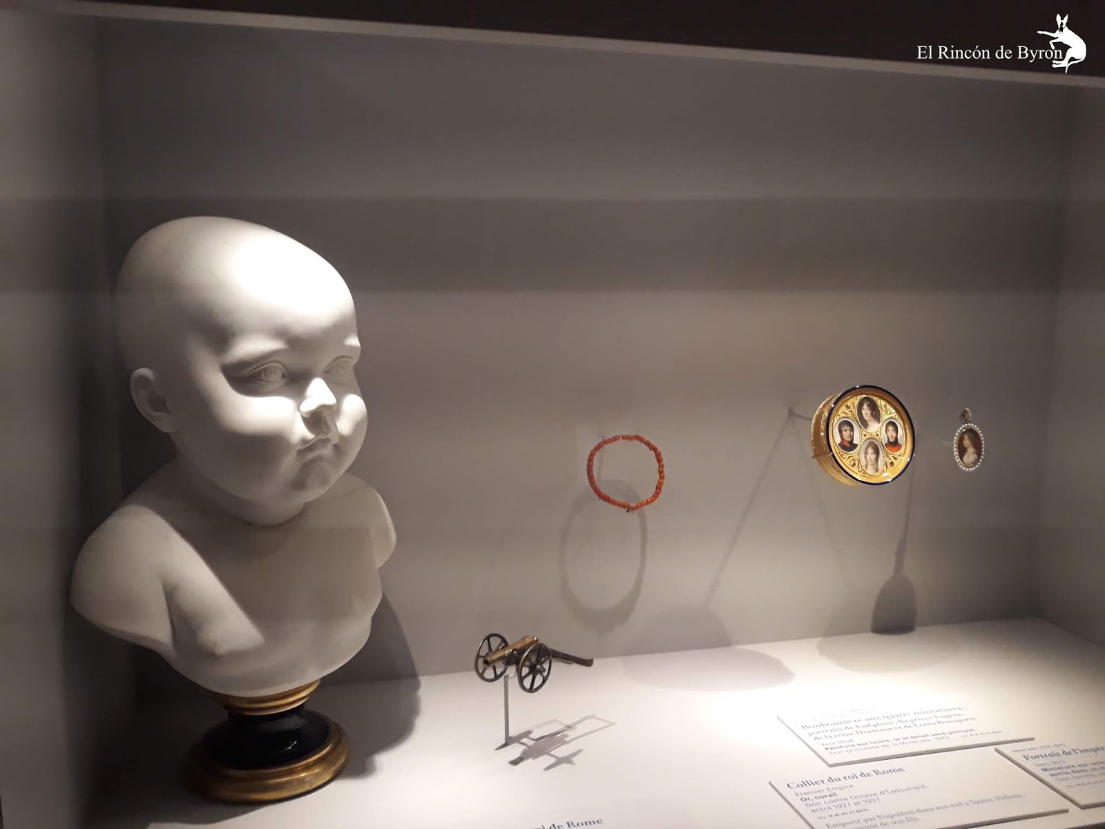 Napoleón lleva a Santa Elena la caja de dulces de cuatro miniaturas, ofrecida por Josefina, y el dibujo del Rey de Roma con el casco de Marte, recogido en el Elíseo por su primer ayuda de cámara, Marchand, durante la constitución de los equipajes. En la isla, la condesa Bertrand le prestó su retrato en miniatura de Josefina, similar al expuesto aquí, que el emperador había copiado.