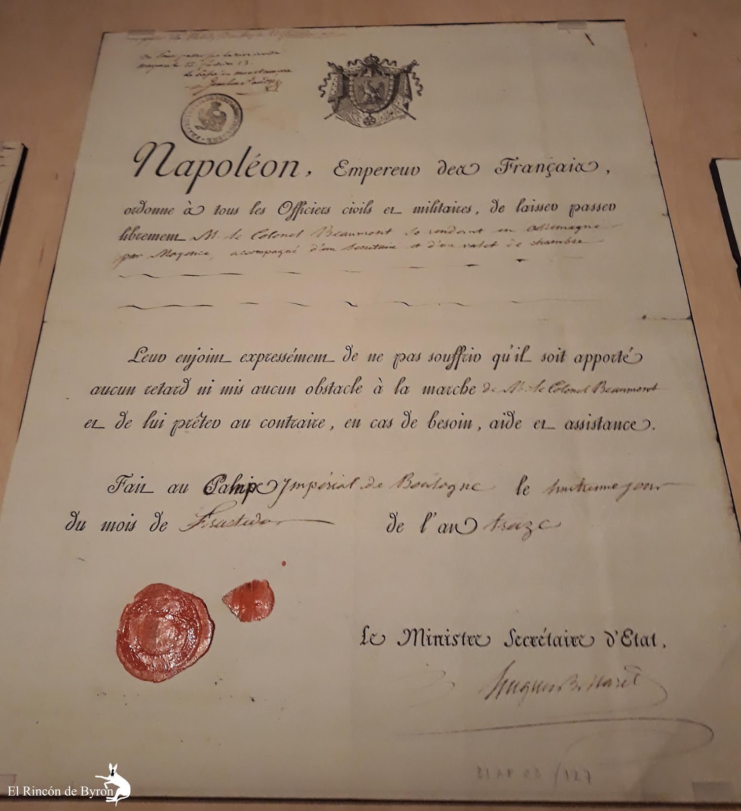 Esta carta atribuida al coronel Beaumont, pseudónimo empleado por Murat, que le debía facilitar su misión de espionaje en Alemania y Austria.