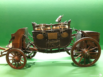 Este modelo reducido se realizó en recuerdo de la presentación a Napoleón y al rey Maximiliano I de Baviera de las primeras “marmitas ambulantes”, el 6 de enero de 1806. En esta ocasión, el emperador y el rey degustan la sopa “a la Rumford”, por el nombre de su inventor, un americano instalado en Baviera. La idea de instalar las marmitas sobre un vehículo para una distribución ambulante de sopa caliente se debe al consejero del rey de Baviera, Anton Baumgartner.