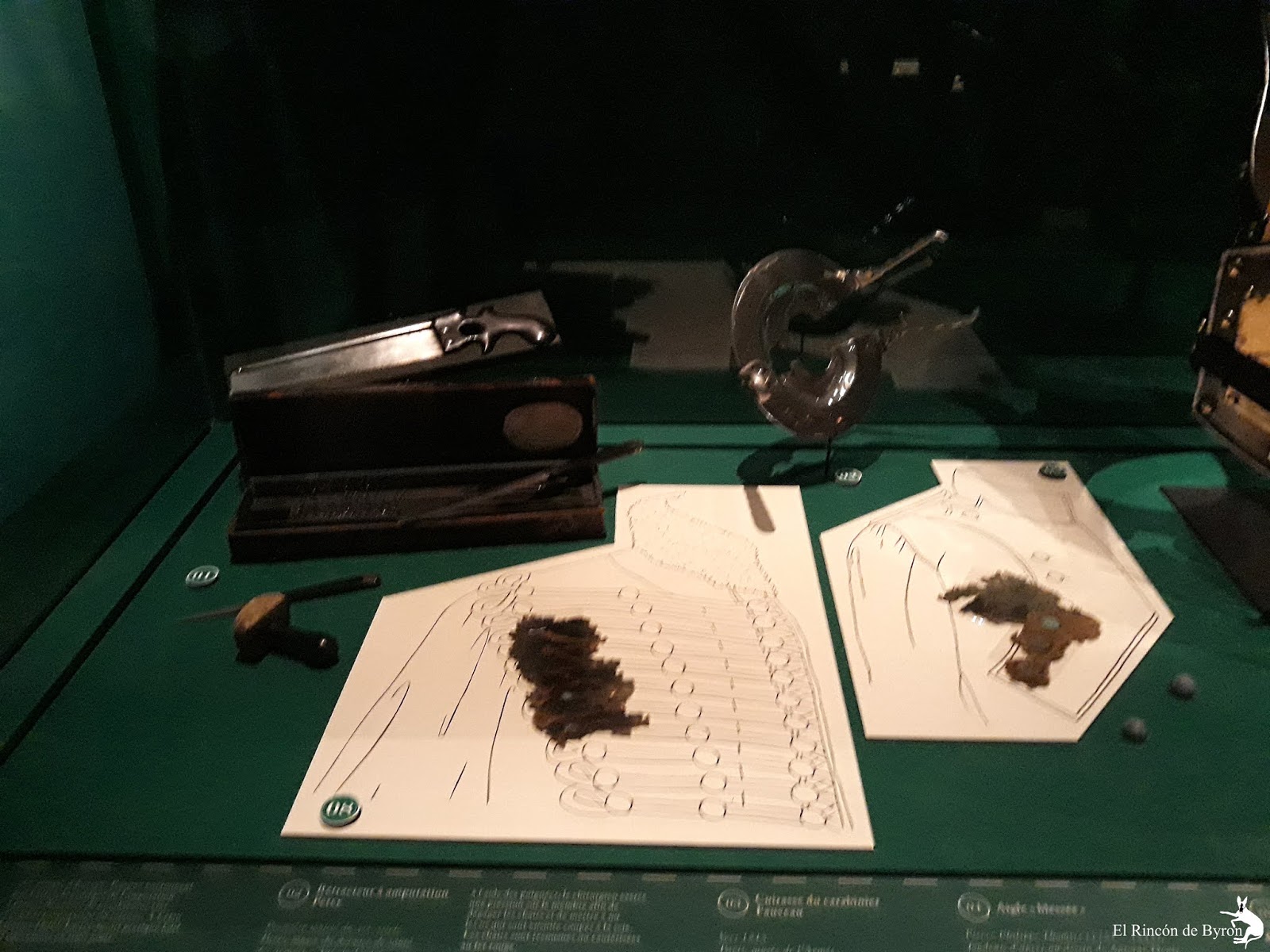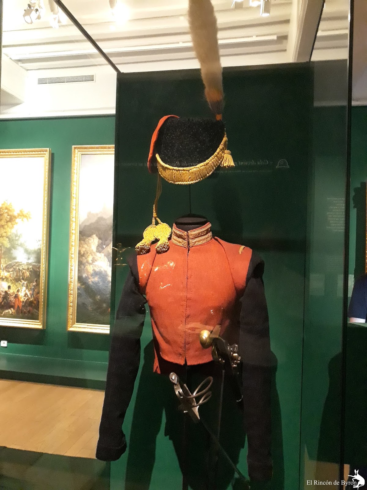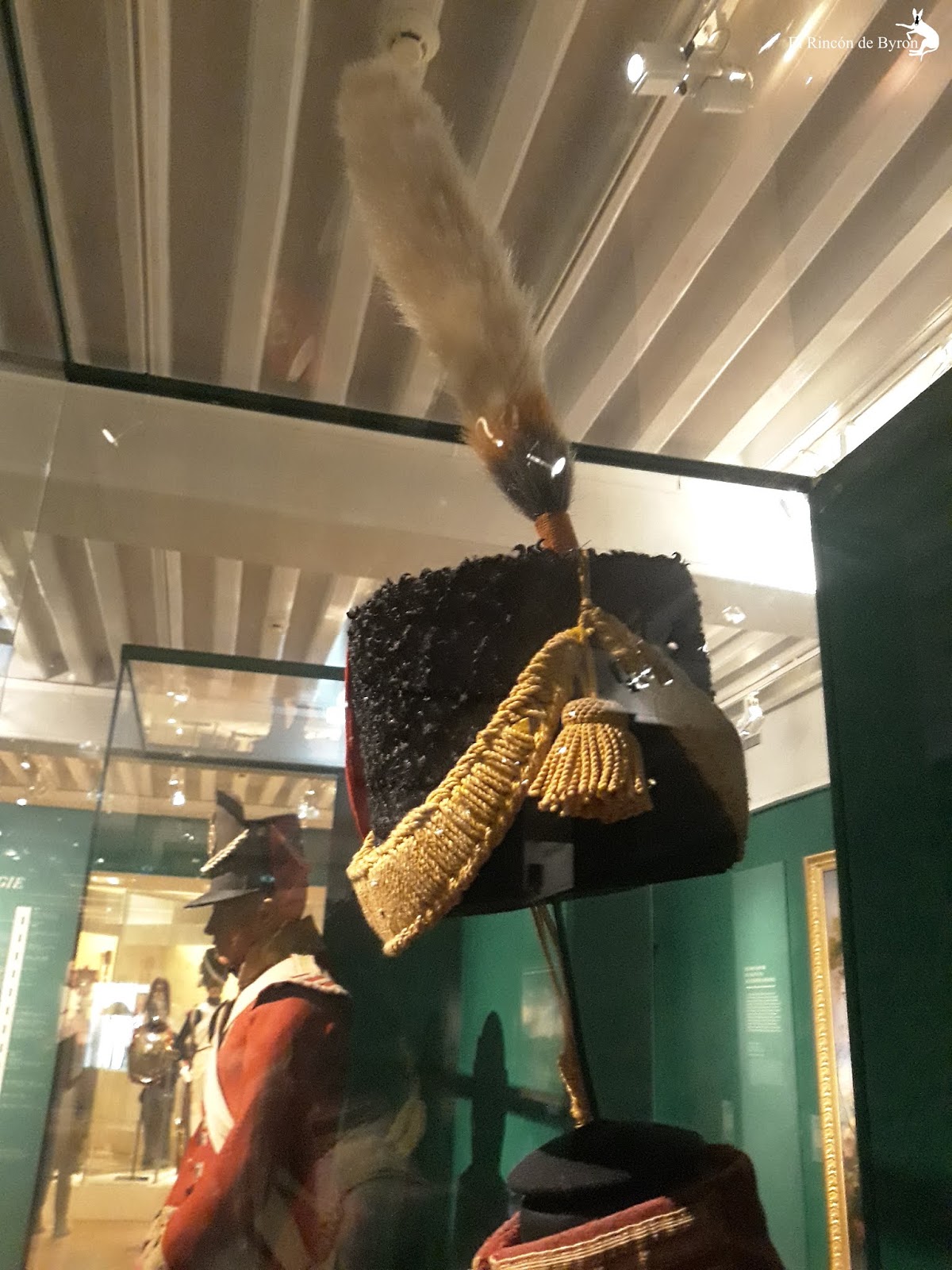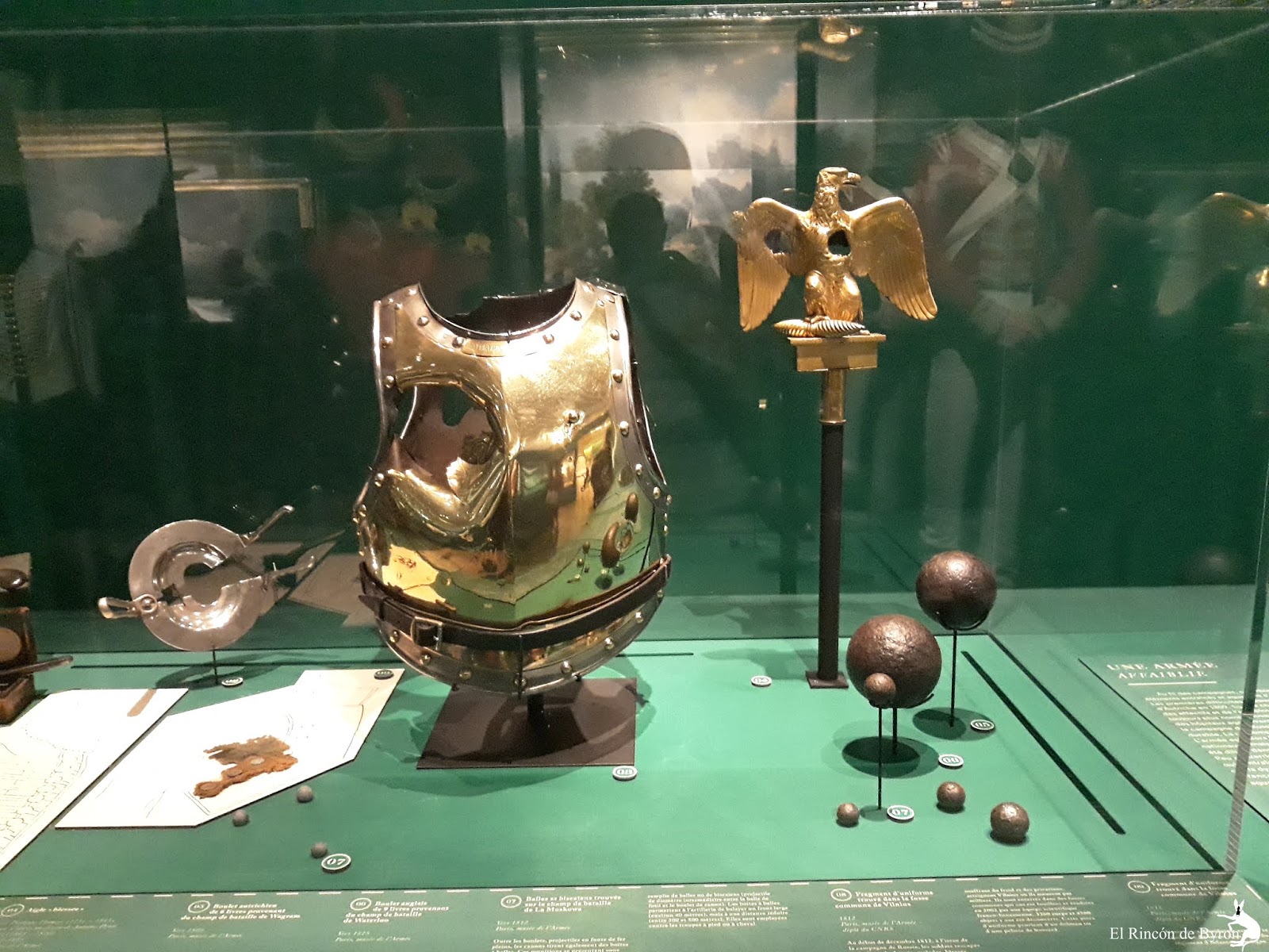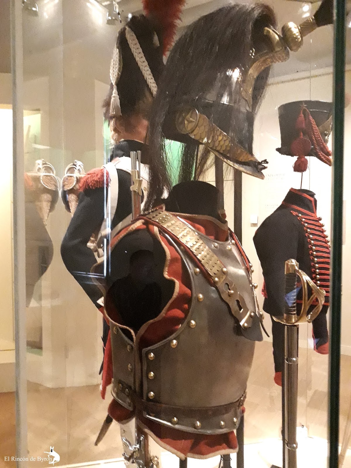 Esta coraza, perforada en parte por un proyectil, perteneció a un joven carabinero, enrolado en el mes de mayo de 1815 y muerto, un mes más tarde, en Waterloo.