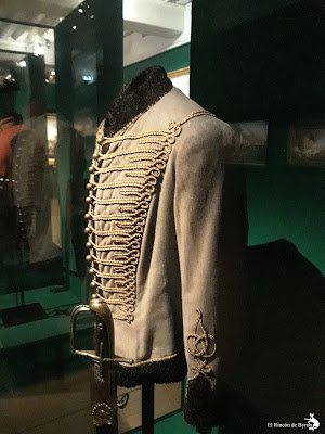 Observa aquí a los soldados de infantería prusianos en la vitrina. Está muy dañado pero se distingue el águila de los prusianos, en vuelo, coronada, armada con una espada y los destellos evocando el rayo del dios Zeus.