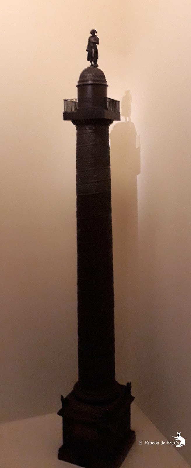 Observa la estatua que corona el modelo reducido de la columna Vendôme cerca del panel. Representa la imagen del estratega.