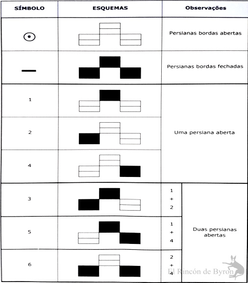 El cuadro inferior permite observar cómo se hacía la combinación de la apertura y cierre de las persianas para poder transmitir números de 0 a 6. Las tablas se construyeron sobre la base de estos números.