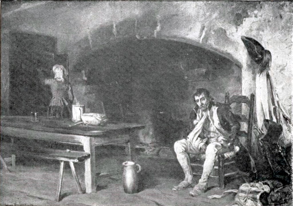 “La Gîte” (“La morada”), uno de los mejores éxitos del pintor en los últimos salones. Entre dos gestas guerreras, el viejo soldado, cansado, quizás herido, estaba sentado en una cocina antigua, frente a la alta chimenea. Encontrará alojamiento, buena comida, y el descanso, sin duda. La decoración, tomada de uno de nuestros castillos de Lemosín, es, como el personaje, tratada de una manera áspera y realista, de buena calidad. Dije que esta pintura le había otorgado a su autor un gran éxito en el Salón: no fue la primera, ya que los trabajos anteriores le dieron al Sr. Raymond Desvarreux, la medalla de plata, luego la de oro.6