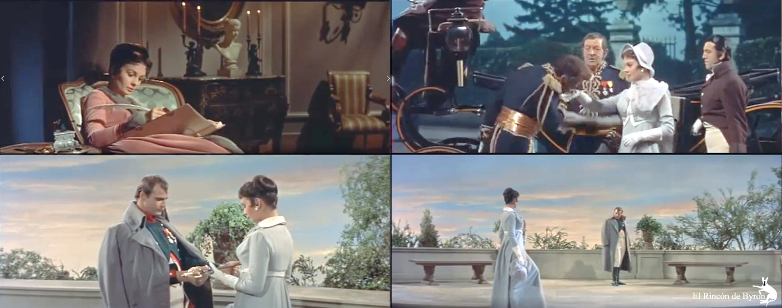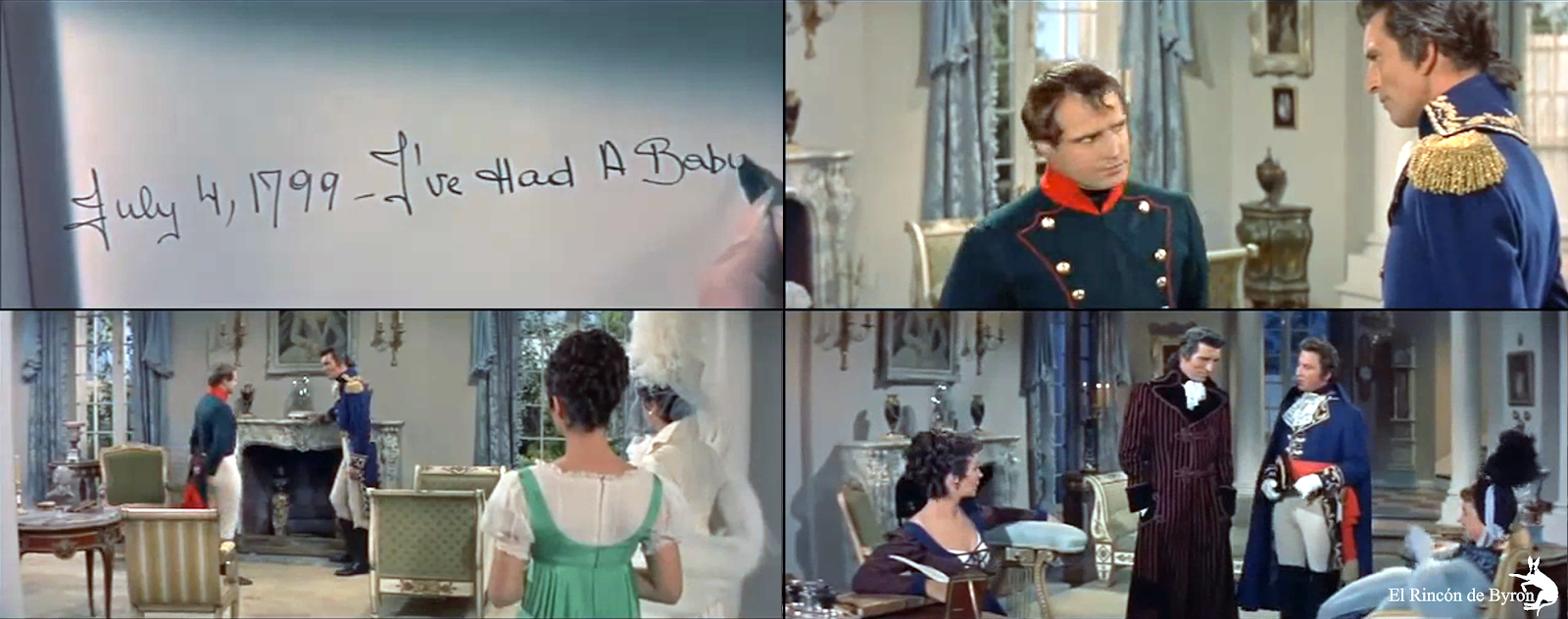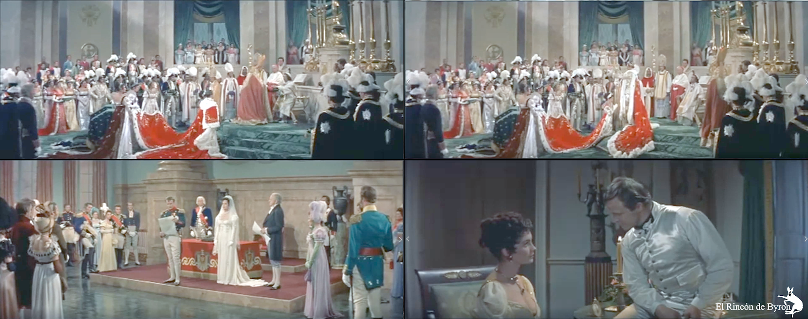 a – Impresiones de pantalla -aclaradas y optimizadas- de película \»Désirée\» (1954), por Twentieth Century Fox.