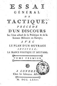 En 1770 publicó su «Essai général de tactique« en Londres, y esta célebre obra apareció en numerosas ediciones posteriores y en traducciones al inglés, alemán e incluso al persa. De este trabajo se puede decir que fue el mejor ensayo sobre la guerra producido por un soldado durante un período en el que se discutieron las tácticas incluso en el salón y la literatura militar fue más abundante que en cualquier momento hasta 1871.