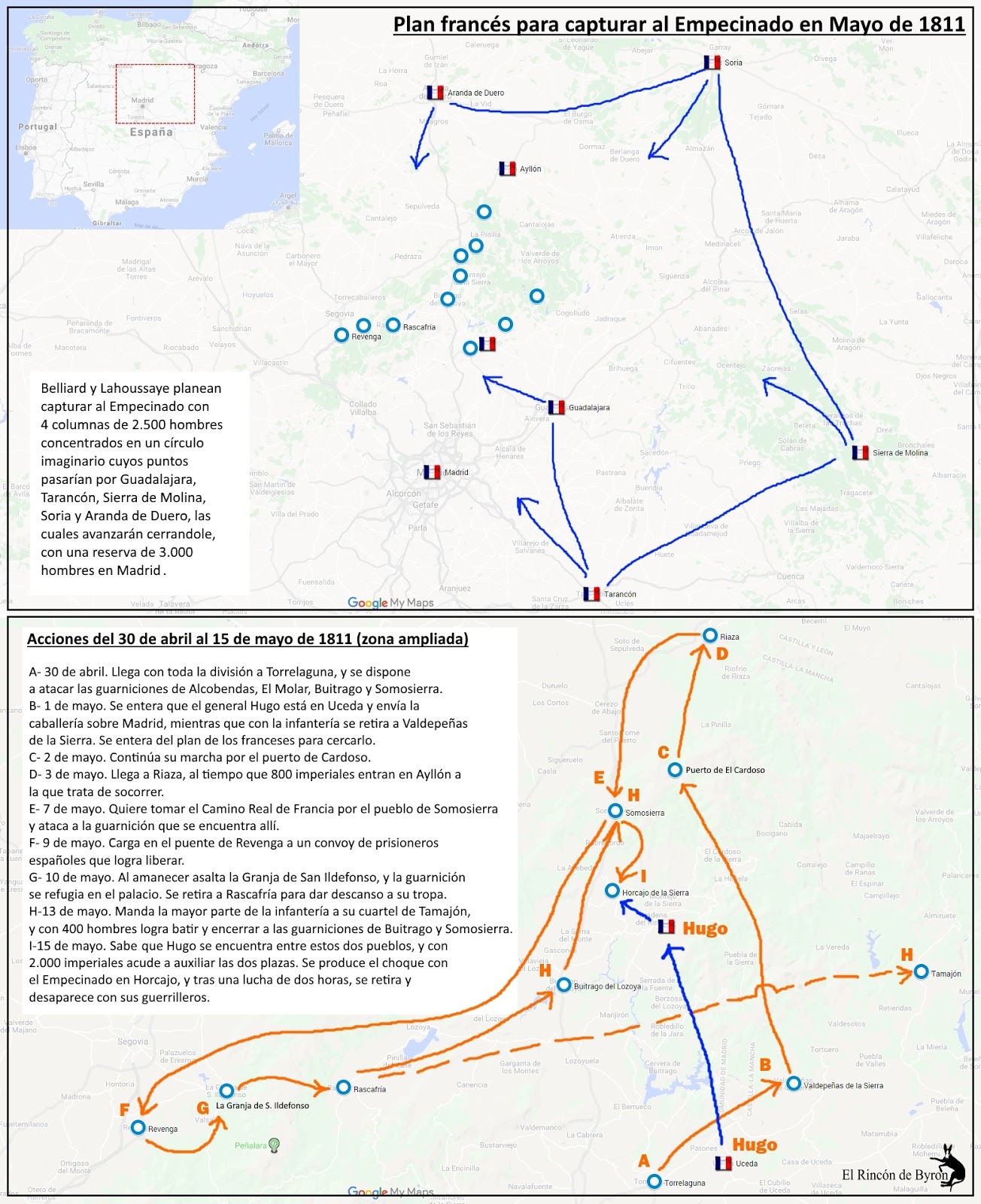 | Movimientos del Empecinado durante la 1ª quincena de mayo de 1811. |