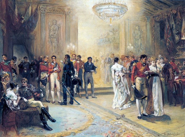 p) – By Robert Alexander Hillingford – painting \»The Duchess of Richmond\’s Ball\» in Goodwood House the family seat of the Dukes of Richmond, Public Domain, https://commons.wikimedia.org/w/index.php?curid=11549854