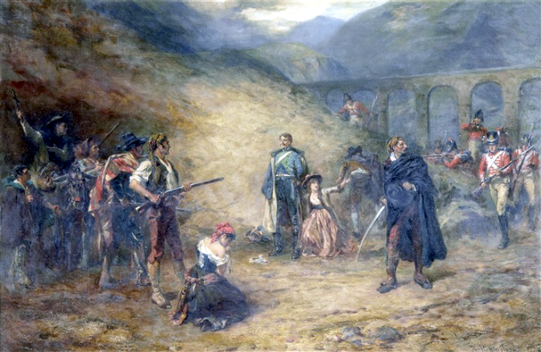 Una escena de la guerra peninsular, del período 1812-1814; Los británicos impiden la ejecución de un oficial francés capturado por guerrilleros españoles.