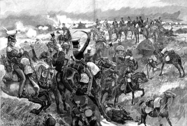 | La caballería inglesa en una imagen modificada a partir de un grabado de Knötel (a) |