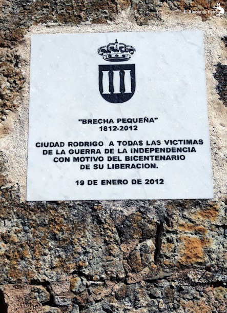 Ahora pueden ver el gran monumento a Don Julián Sanchez, un hombre muy valiente, nativo del lugar y también la placa que originalmente fue levantada a «Black» Bob, fue costeada por los Royal Green Jackets a finales del siglo XX. Tenemos estas dos placas en la pared, en esta también se nota en la otra ubicación. Ahora bien, para escuchar más sobre eso, bueno, porque uno de esas placas cubre el Bicentenario del asedio francés y me presenté para ello y, bueno, era julio, recuerden, hubo tensiones y el sol brillaba pero había miles de personas aquí, las bandas tocando esto era, ya saben, una recolocación.