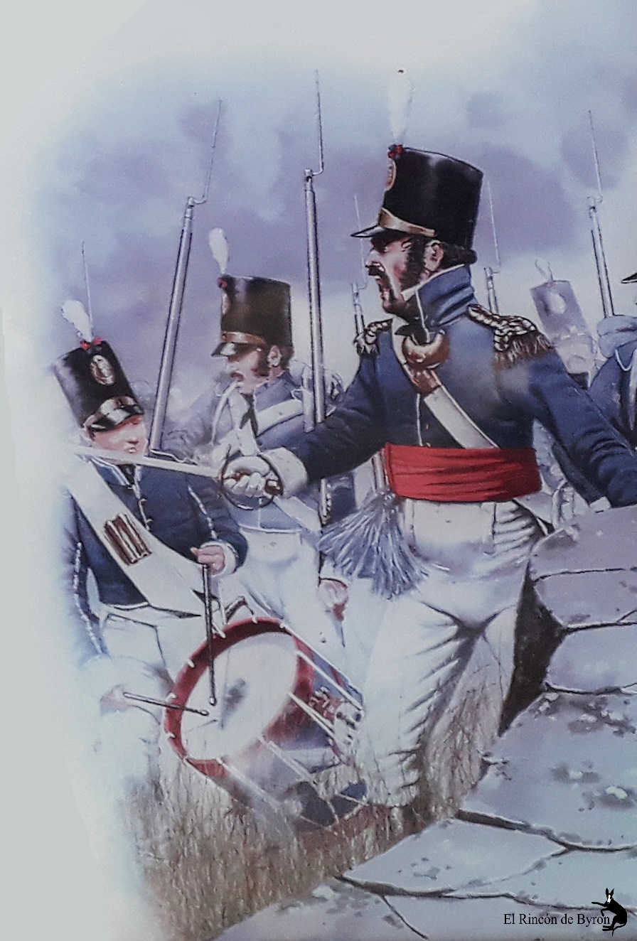 Cuando las tropas ligeras se despliegan en unos o doses, necesitan salir del área, no deben encontrarse aislados en unos o doses, porque no se puede formar un cuadro con una o dos personas. Si el batallón está intacto, como vimos en Fuentes de Oñoro, cuando se formaron cuadros como todos los demás. Pero ustedes saben que en unos o doses, con la caballería cargando de frente al área, lo mejor que pueden hacer es tirarse en el suelo, es la mejor cosa que pueden hacer.