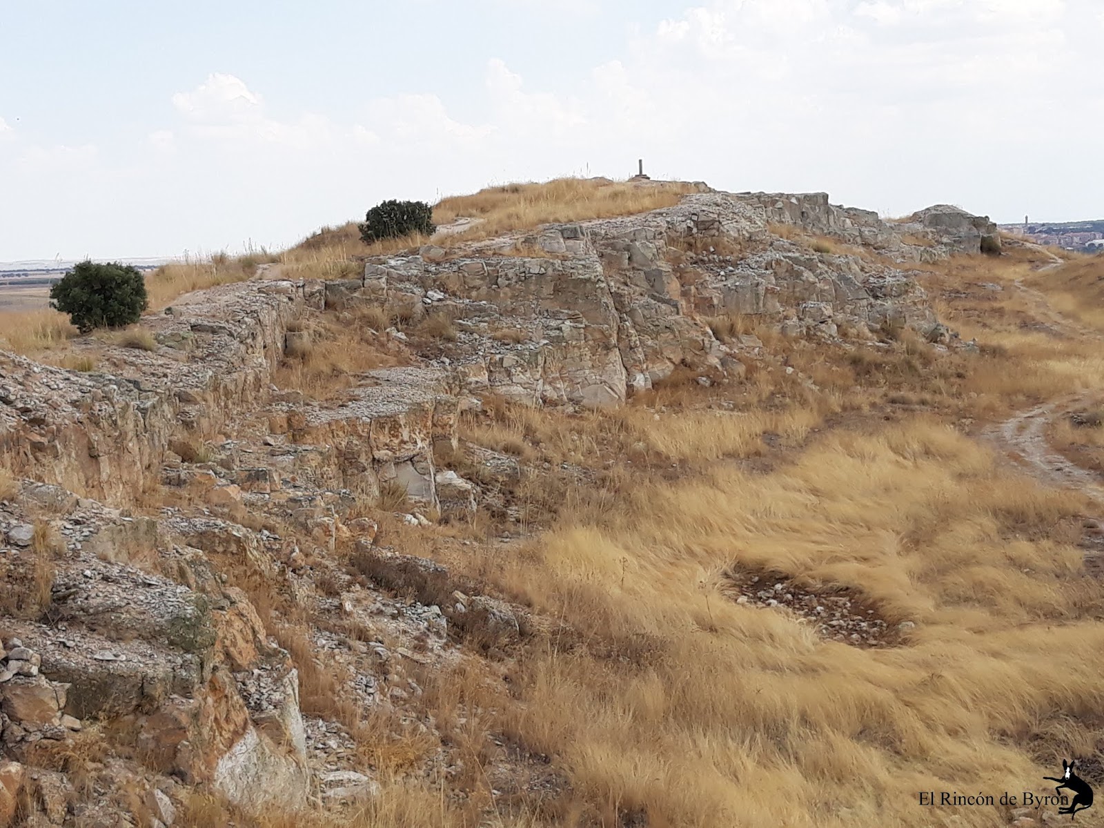 | En la cima del Arapil Grande, con orientación a sur, y el pueblo de Arapiles al fondo. |