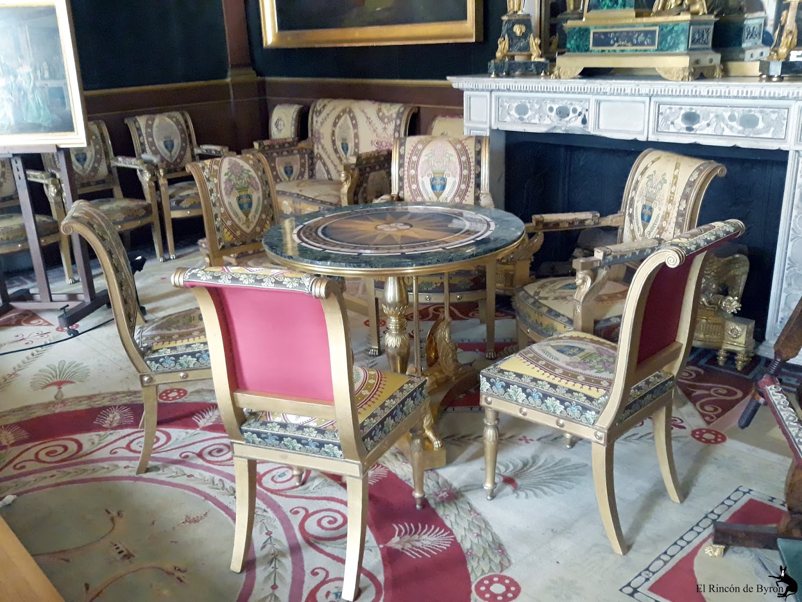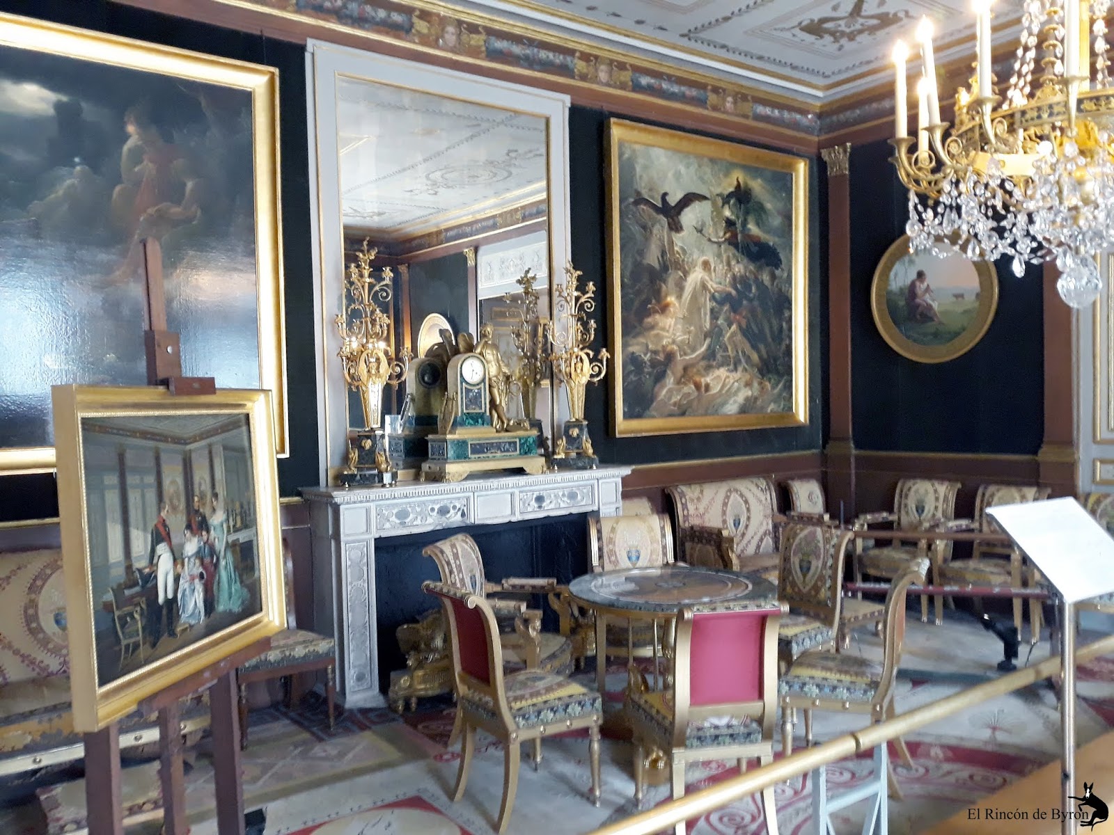 | \»La Emperatriz recibiendo la visita del emperador Alejandro\», por Hector Vigier (Salón de 1865). Esta pintura muestra el estado de la estancia después del divorcio. (e) |