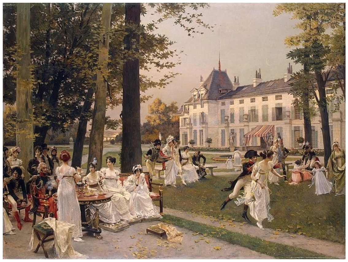 | Recepción en la Malmaison en 1802 (1893). François Flameng – Óleo sobre panel, 106x139cm, Hermitage St. Petersburgo (b) |