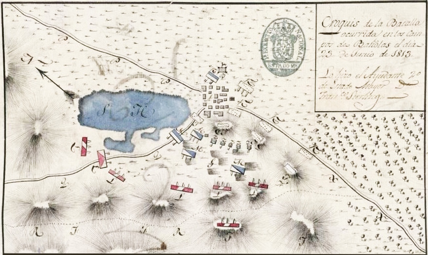 Esta accion sostenida por un corto numero de Tropas como los que yo mandaba que no llegaban á dos mil trescientos Infantes y ciento catorce caballos durante el espacio de cerca de seis horas contra unas fuerzas mas que duplicadas hará conocer al enemigo hasta donde puede llegar el denuedo y bizarria de las Tropas de este primer Exto, que tan á su costa acaba de experimentar.