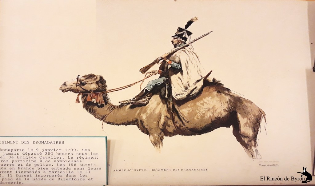 Creado por Bonaparte el 3 de enero de 1799. Sus efectivos no sobrepasaron nunca los 350 hombres bajo las órdenes del jefe de brigada Cavalier. El regimiento de dromedarios participó en numerosas acciones de guerra y de policía. Los 196 supervivientes retornados a Francia sin sus monturas, fueron licenciados en Marsella el 21 de enero de 1802. Fueron incorporados en los Cazadores a pié de la Guardia del Directorio y en la Gendarmerie.