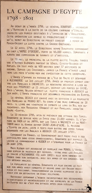 Para finalizar un recorrido por la primera campaña de Italia y por la campaña de Egipto, una de las más genuinas expediciones generales de todos los tiempos y que a pesar de acabar en un claro fracaso, dejó para el recuerdo el paso de Francia por tan lejanas y exóticas tierras y el embrión del nacimiento de la moderna Egiptología.