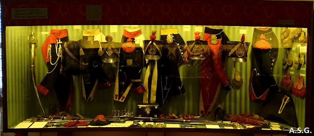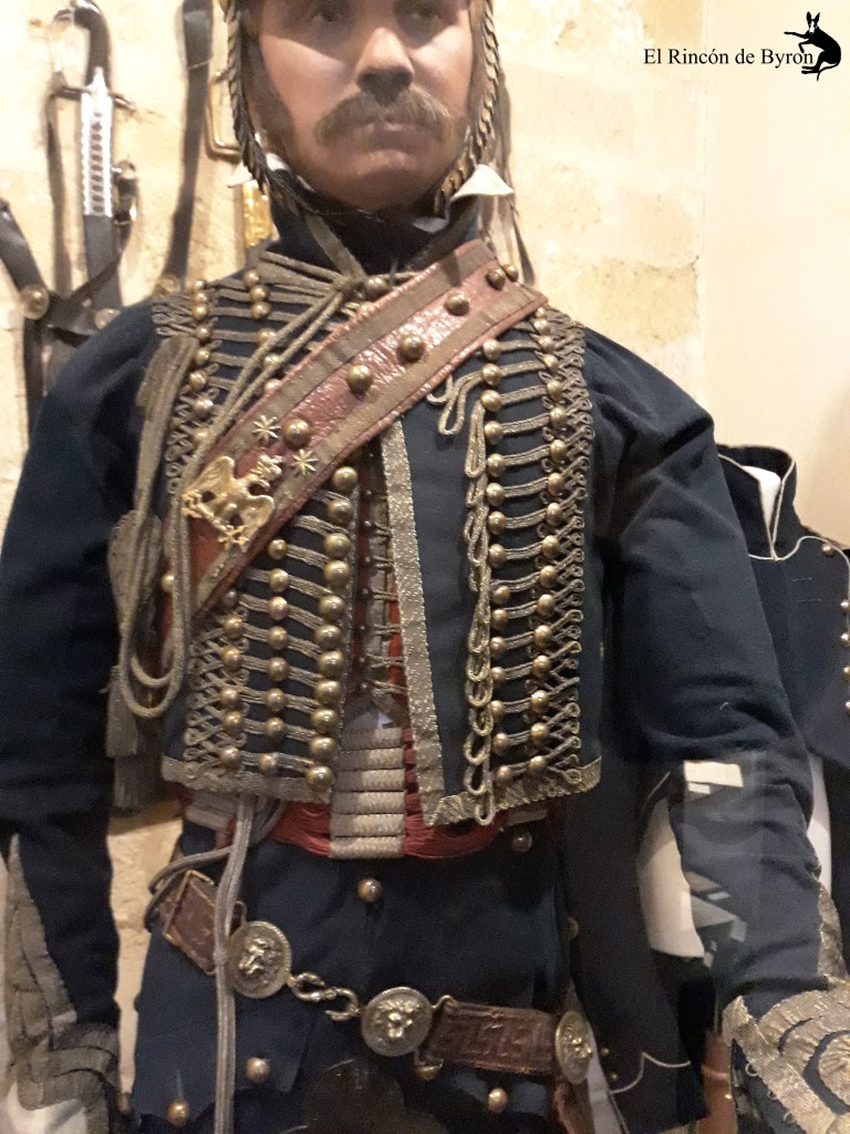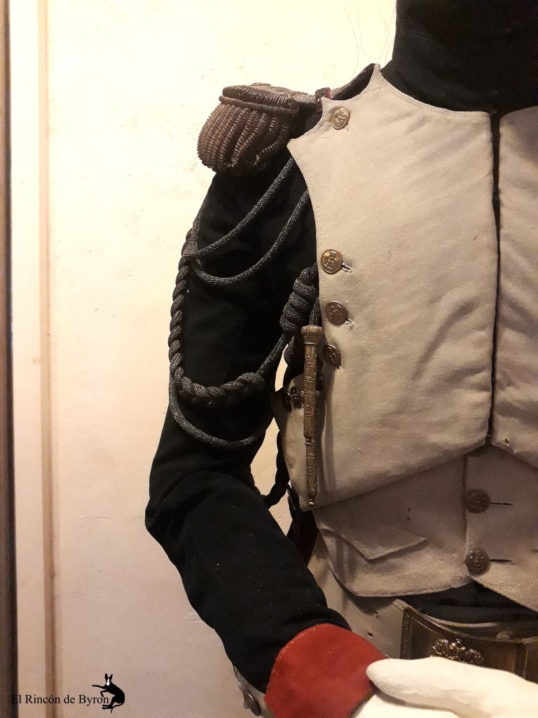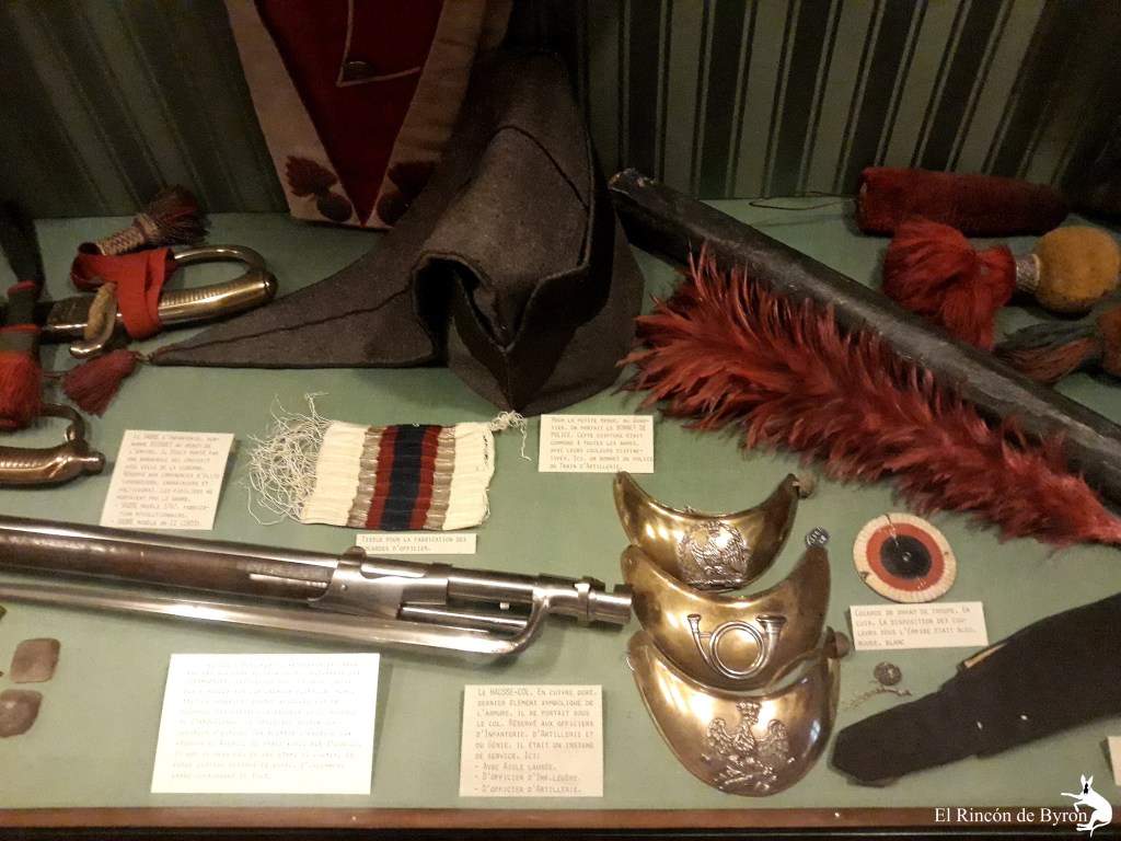 Veremos algunas piezas curiosas, como el uniforme de Oficial de húsares «a la nankin», totalmente blanco, un cubre-portapliegos de cuero para proteger la pieza de las inclemencias del tiempo, un uniforme de los famosos marinos de la Guardia imperial y el habitual desfile de modelos de chacós, casacas, penachos, espadas, pistolas y todo género de adornos y piezas que complementaban los uniformes de soldados y oficiales franceses de la época.