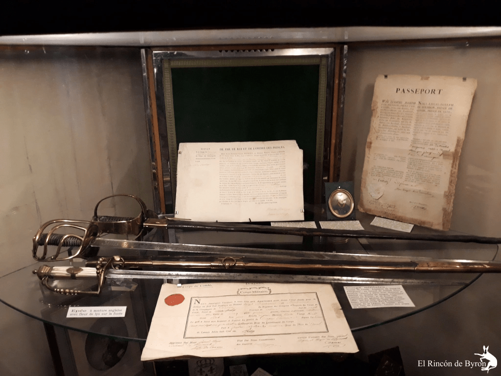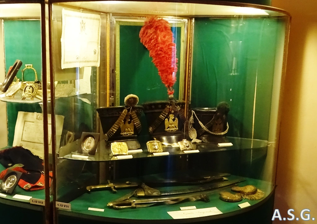 Retrato miniatura: de Granadero a pie. El uniforme que lleva está expuesto en la vitrina “Guardia Imperial – Caballería”; Retrato miniatura de general de división; Cinturón de uniforme de gala bordado en oro que lleva en la miniatura; Gladio de ceremonia y espada de bronce dorado; Placa de cinturón de Granadero a pie; Estribo y espuelas de uniforme de gala de bronce dorado; Filete metálico de bocado de caballo;