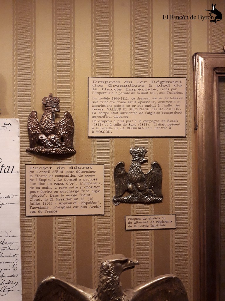 Para las banderas y estandartes del ejército. Estos emblemas fueron distribuidos en el transcurso de la célebre ceremonia del 5 de diciembre de 1804. En bronce dorado, las águilas son obra del escultor Chaudet y del broncista Thomire. El águila constituía la esencia del emblema, siendo la tela secundaria. Se decía “el águila” y no la bandera. Recorrieron Europa de 1805 a 1814.