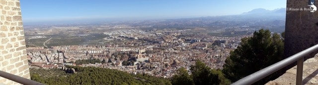 | Panorámica de la ciudad de Jaen, desde las murallas del castillo, a unos 250 m de desnivel. |