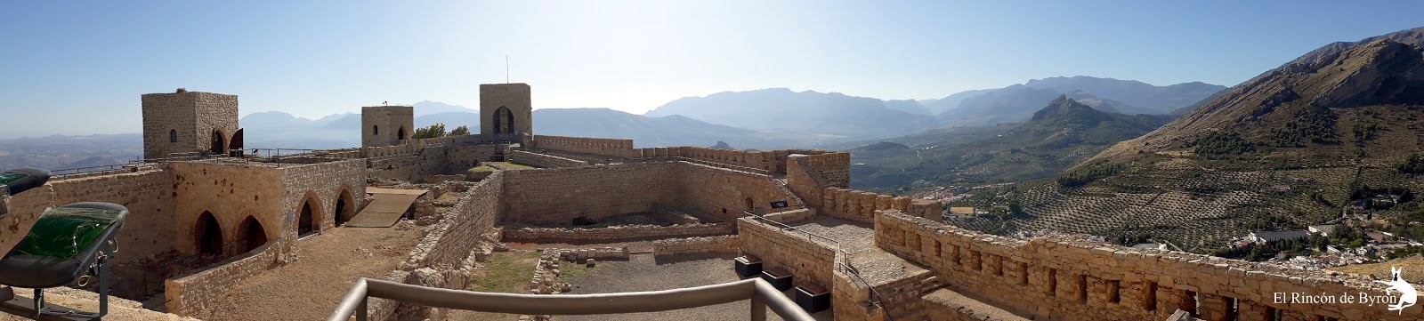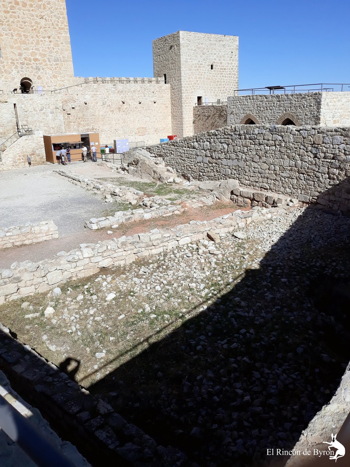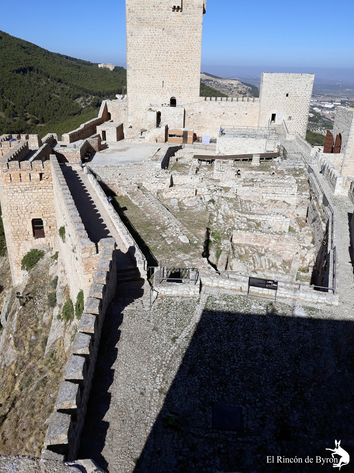 | Perspectiva interior de la fortaleza. La Torre Albarrana, primera a la izquierda y la Torre de la Vela, la primera por la derecha. |