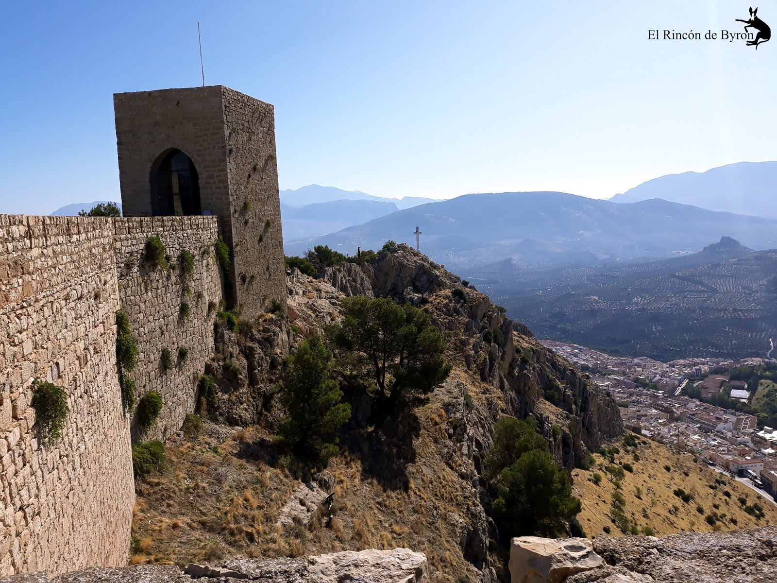 | Murallas del castillo, con la Torre de la Vela, la Cruz del Castillo y la ciudad de Jaén a sus pies. |