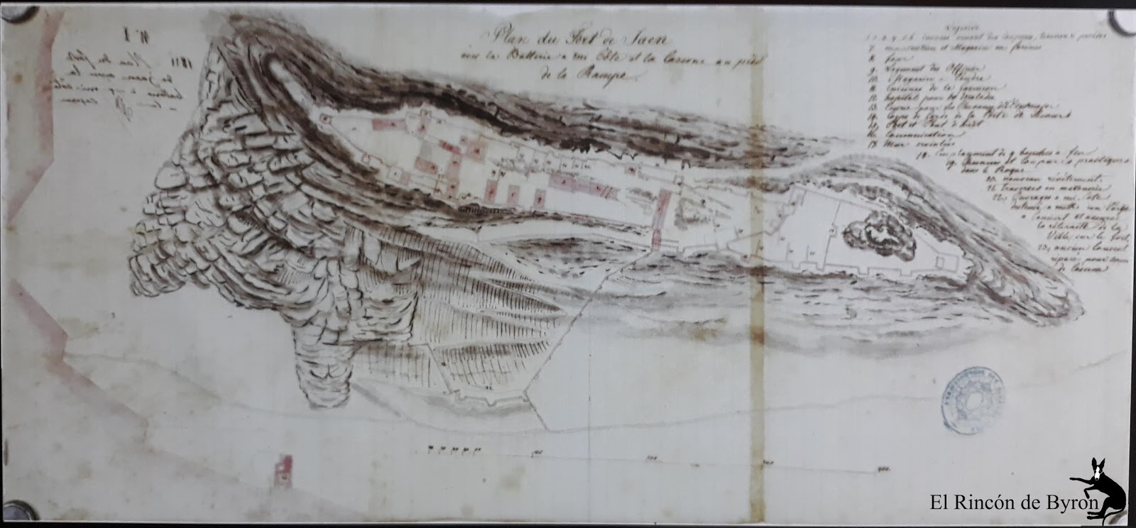 | Castillo de Santa Catalina en 1811. Reformas realizadas por el ejército francés en 1810. Service historique de l\’Armée de Terre. Département des archives et de la bibliothèque. Division de génie et de l\’artillerie. |