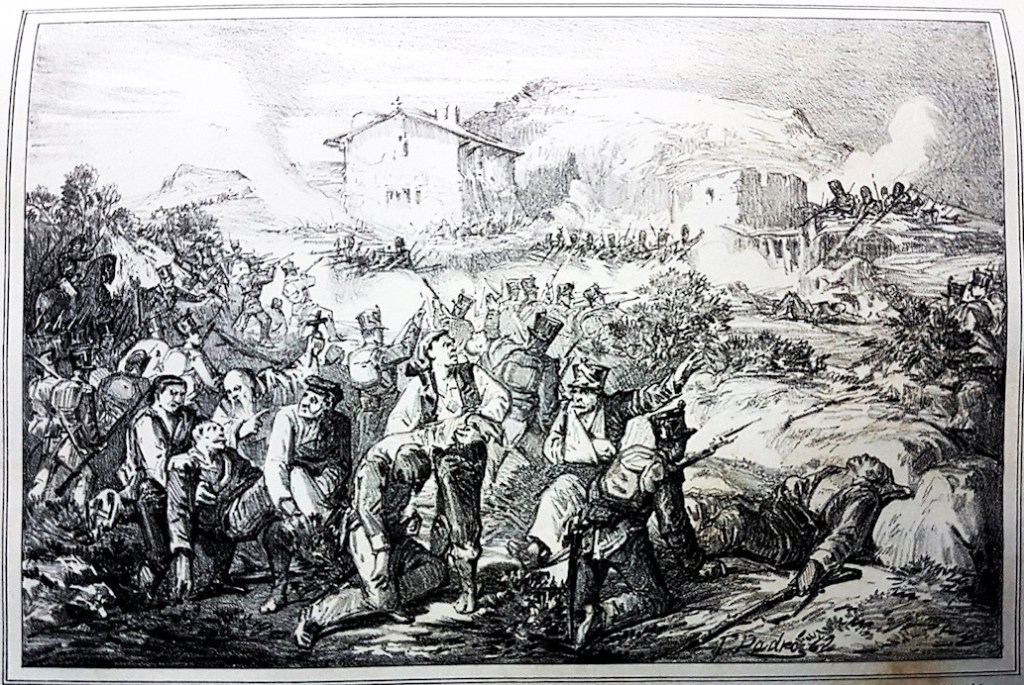 Nuestra perdida ha sido corta en comparación de la del enemigo pues este dejó muchos cadáveres en los montes sin contar con los que los Paisanos han encontrado enterrados y tirados a los pozos, como en las balsas, acreditando esto un prisionero francés que han traido los somatenes quien dice, padeció mucho la división Italiana mandada por el teniente D: NIcolas Median que contribuyeron con sus tercerolas heciendo un terrible fuego.