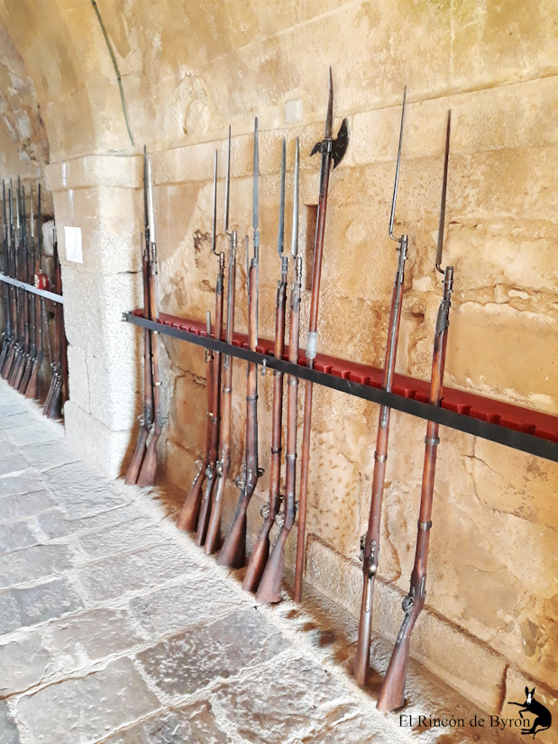 Algunos ejemplos de armas de fuego y alabarda en el corredor de acceso al recinto, así como la garita interior en la misma ubicación.