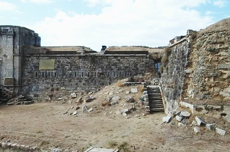 Baluarte del Príncipe y el foso con el conducto de desagüe, que recorre perimetralmente la fortaleza y que servía para desalojar las aguas hacia un pozo en el exterior y también poder limpiar más fácilmente la cuneta (el foso).
