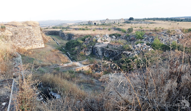 Vista desde el baluarte de la Reina orientado hacia la frontera, con el revellín intermedio.