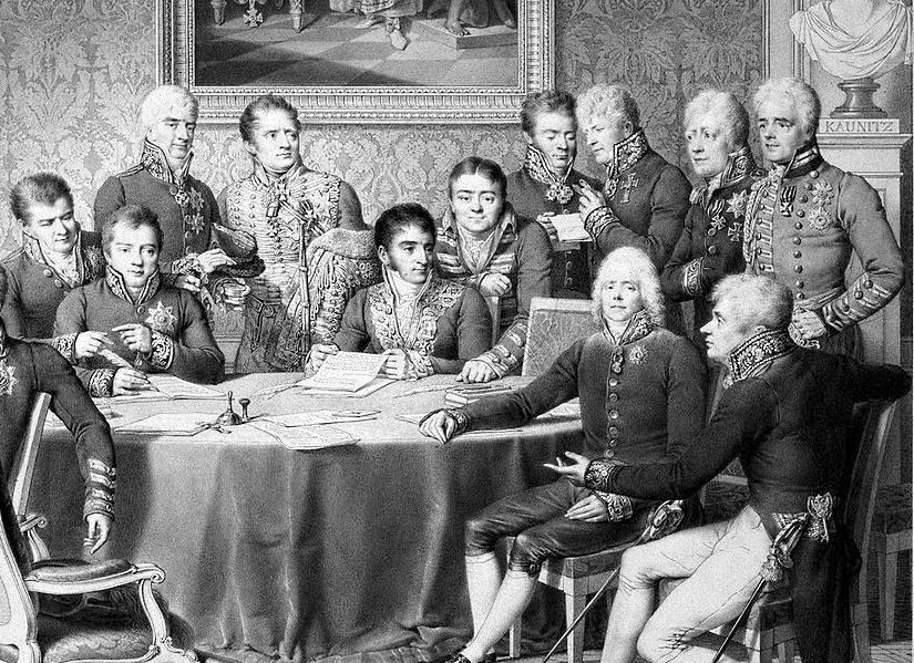 En efecto, incluso aquellos que trataron de volver atrás en el tiempo. El príncipe Víctor Manuel I de Cerdeña, que tuvo que refugiarse en esa isla, el reino de Cerdeña, que tomaron también los franceses. Volvió y retiró todo lo que recordara a los franceses, expulsó a todo francés que se encontrase, destrozó incluso la totalidad de los jardines botánicos que habían establecido los franceses, cortó las plantas y quemó las contagiosas semillas, pero siguió conservando el sistema de elección de impuestos que había sido implantado por los franceses, mantuvo la Gendarmerie que pasó a denominar Carabinieri y tampoco hizo ascos a hacerse cargo de la República de Génova, que los franceses habían liberado también. Incluso el Papa que regresó y se sentó en el trono, depuesto por los franceses, reintrodujo la Inquisición y los jesuitas, e incluso prohibió el fascinante sistema de iluminación puesto por los franceses y estas intenciones, ideológicas, pero incluso mantuvo el sistema de elección de impuestos francés. Por lo tanto, todos en algún lugar estaban afectados por el nuevo orden. De hecho, la nobleza también tenía la intención de traer un nuevo sistema maravilloso. Mucha gente que contaba con los cuatro grandes: Gran Bretaña, Rusia, Austria, Prusia. Y todos estos cuatro decidieron articular lo que querían ver. Ya se había firmado el Tratado de Chaumont, en marzo de 1814, que había establecido un conjunto de líneas paralelas contra el enemigo, contra Francia que veían imbuida del jacobinismo, pero por el poder militar, vieron como la única manera de mantener Europa segura por una vez era tener una cobertura, un sistema militar, que iba a impedir que Francia volviera a perturbar la paz de Europa. Así que lo decidieron, y se supone que se reunieron, un mes antes de que todo el mundo llegara a Viena y se encontraron para conocer todos los detalles, así que imaginen, sus palabras serían: “Negociemos antes que ratificar”.