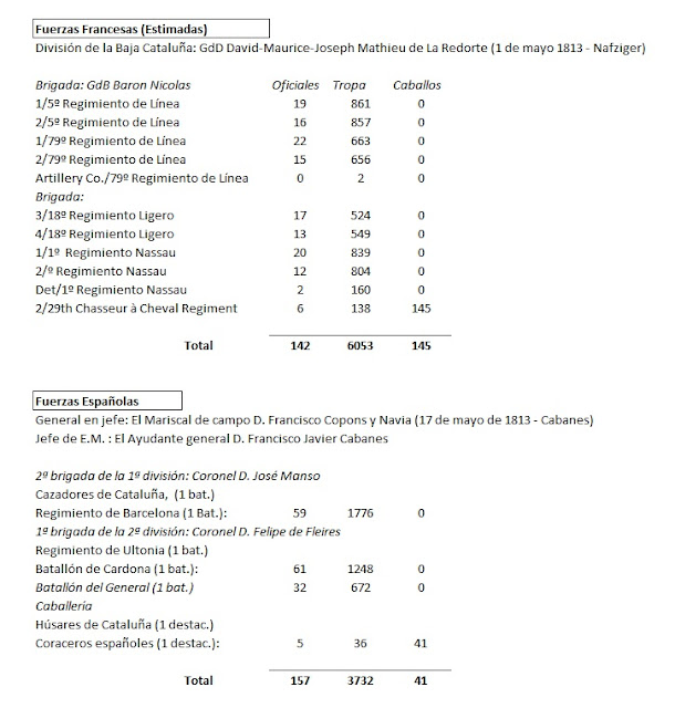 Incluimos a continuación el orden de batalla estimado de los dos contingentes: