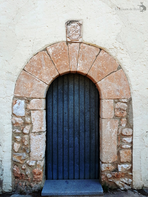Parte posterior de la ermita y entrada donde se consigna su año de construcción (1804) encima de la clave del arco de mampuesto y piedra. A pesar de lo aislado del lugar, en plena montaña, esta zona también sería escenario de las represalias francesas contra los habitantes.2