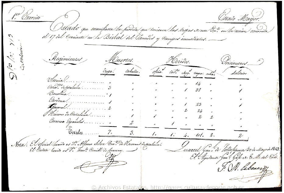 5Estadillo que contabiliza las bajas españolas en la Acción de La Bisbal del Penedés(c):