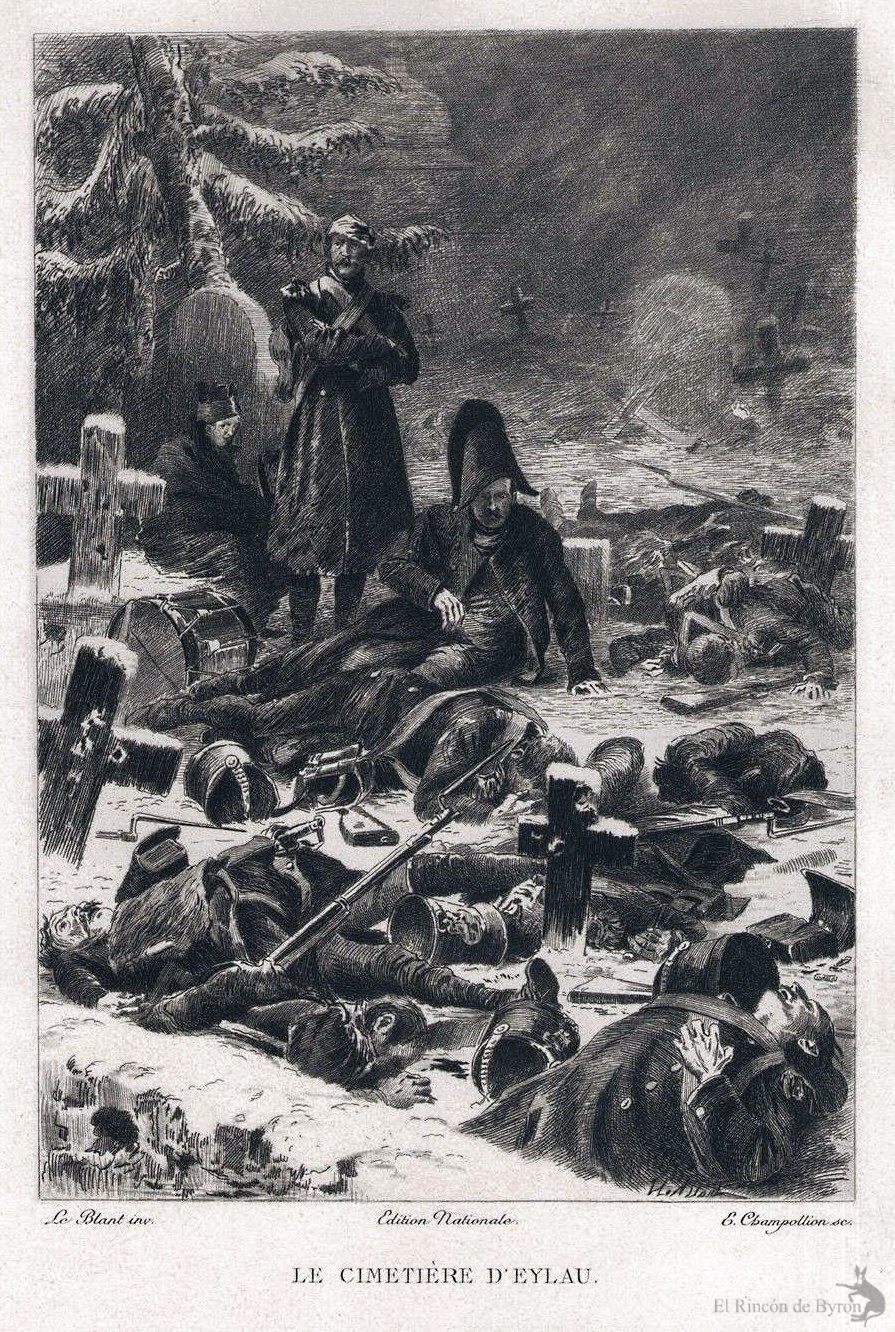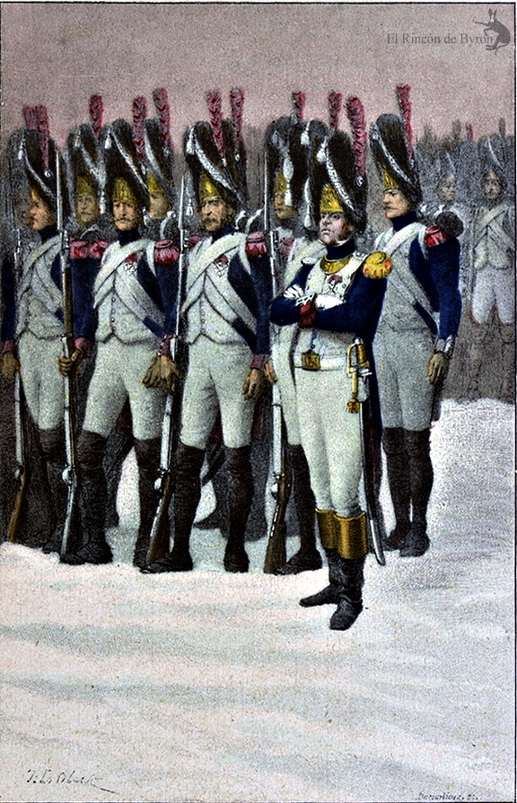 (Derecha): \»Granaderos de la Vieja Guardia en Eylau\», grabado en color (q)