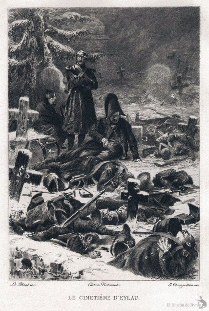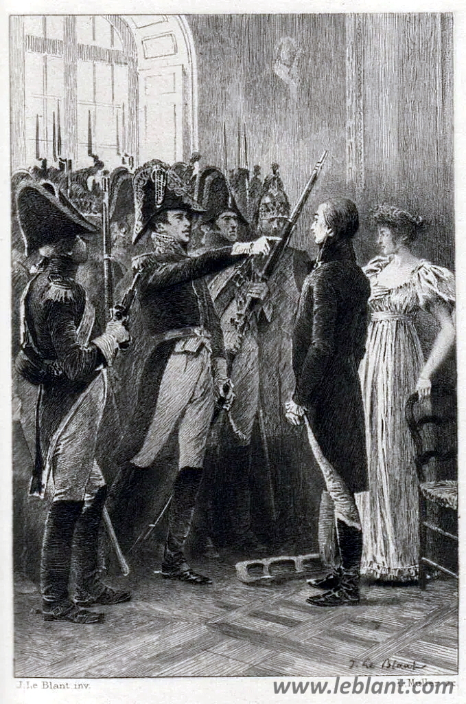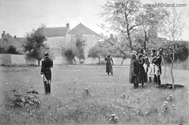 (Derecha): \»La mort du Duc d\’Enguien (Léon Hennique)\» (1895), grabado por Louis Müller (m)