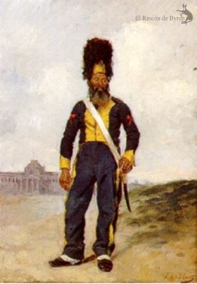 (Derecha): \»Un sapeur de 1812 devant les Invalides\», óleo en panel, 34,5 x 26,5 cm (ag)