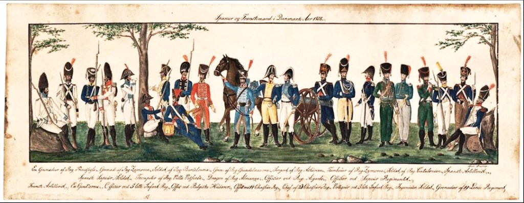 Con la amable autorización de Kim Hansen, del Museum Lolland-Falsters, os traemos un artículo de Peter Heiberg, administrador de bibliotecas y archivos, sobre los españoles en Lolland (Zelanda, Dinamarca) en 1808, que trata de recoger parte de esa singladura y que esperamos dé un nuevo enfoque a dicha época. Peter Heiberg no solo aprovecha su profesión para indagar en documentos históricos, sino que nos da a conocer una novela desconocida, «Pedrillo o el Lollander español«, publicada en 1854, que aunque ficción, aprovecha en su narrativa para incluir elementos históricos del destino de aquellos soldados españoles que no pudieron huir de Dinamarca con los buques de la Royal Navy y se vieron abocados a la prisión, a los trabajos forzados o a engrosar las filas del regimiento José Napoleón en la campaña de Rusia, unidad que ya tratamos en su momento.