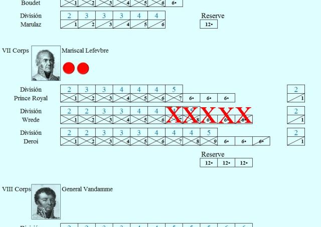 Five casualties (freely distributed) and two fatigue points for losing the battle are discounted, this was a last minute addition based on the Napoléon 1806 rulebook by Shakos.
