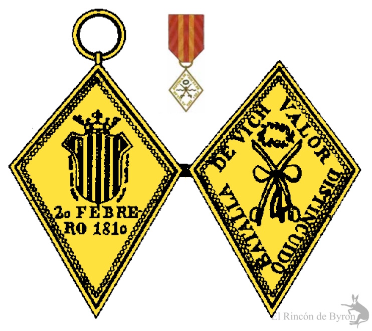 3«Sólo el regimiento de infantería de Almansa, de escasa fuerza, se mantenía sereno en la línea sufriendo mortífero fuego, lo cual, observado por O’Donell, mandó a decir a su coronel que confiando en su valor esperaba contuviese con sus bizarros soldados al enemigo, particularmente a los ocho escuadrones de caballería que se le echaban encima, para poder reunir los dispersos y ordenar la retirada. Así lo hizo Almansa, si bien con grandes pérdidas (de 192 hombres que tomaron parte en la acción, resultaron muertos 27, heridos 29 y 45 prisioneros), consiguiendo se salvasen más de las dos terceras partes del ejército, y se retiró después ordenadamente, como el resto de las tropas, hacia Tona y Colluspina. Quedaron en el campo 900 muertos y heridos y otros tantos prisioneros en poder del enemigo, que no dejó de experimentar también bastantes bajas. Por el señalado mérito que contrajeron todos los individuos de Almansa fueron premiados, exclusivamente, con una medalla de honor, de oro para los oficiales y de plata para la tropa, con el lema Valor distinguido, y además un escudo de distinción bordado sobre paño blanco, a fin de perpetuar la memoria del que desplegó dicho Cuerpo. El ayudante mayor D. Francisco Quintanilla se distinguió, además, adelantándose con gran valor, de orden del general en jefe, para reconocer la fuerza y posición del enemigo.