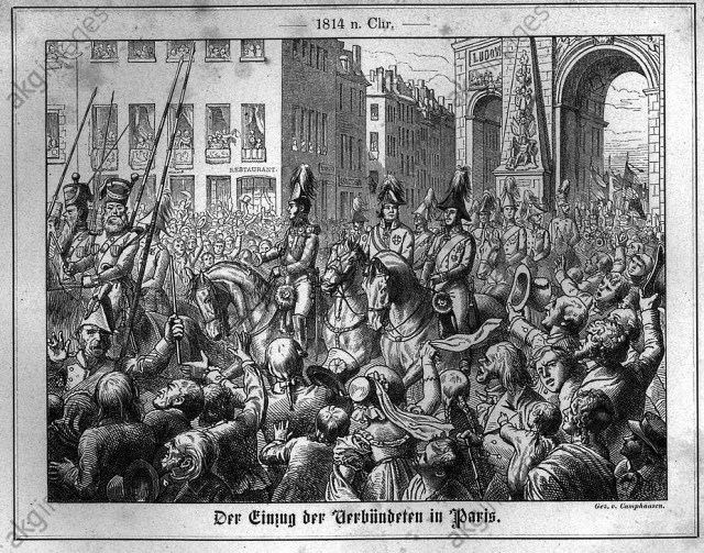 | \»Los Aliados entran en París\» (1860), grabado sobre madera (h) |