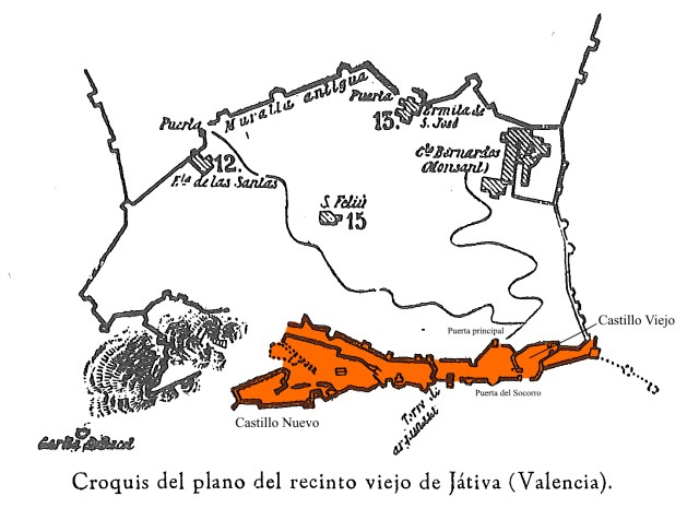 | Croquis del recinto viejo de Játiva, en la obra de Leopoldo Torres Balbás (a) |