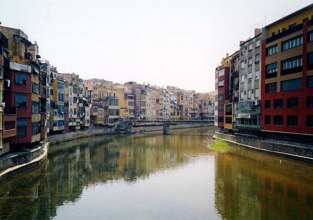 | El rio Onyar, afluente del Ter, aún divide a la ciudad hoy en día. |