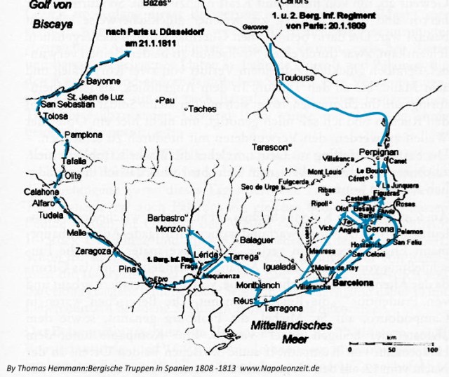 El 20 de enero, el contingente de Berg marchaba desde Versalles a través de Tours, por Toulouse hasta Perpiñán, donde llegó el 1 de marzo. Desde allí, continuó hasta el poderoso