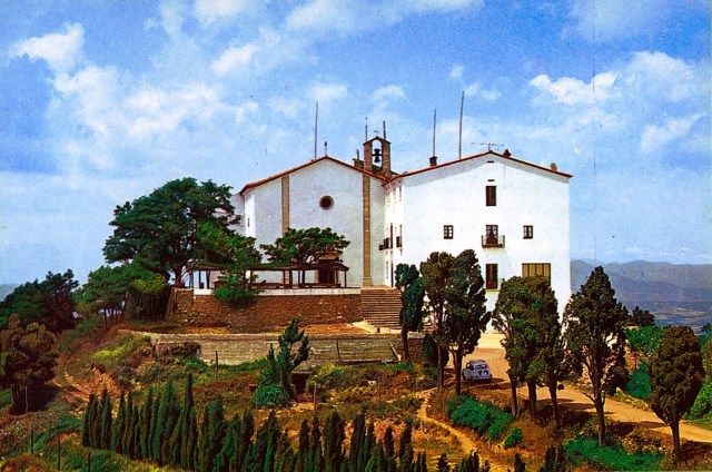 | Santuario de los Santos Ángeles (Postal conmemorativa). Se encuentra en una colina cónica, bastante empinada y arbolada. Actualmente es un hotel con restaurante. |